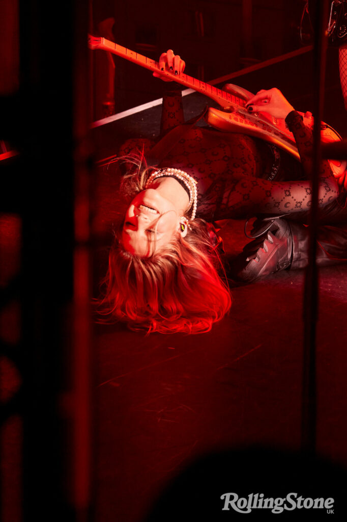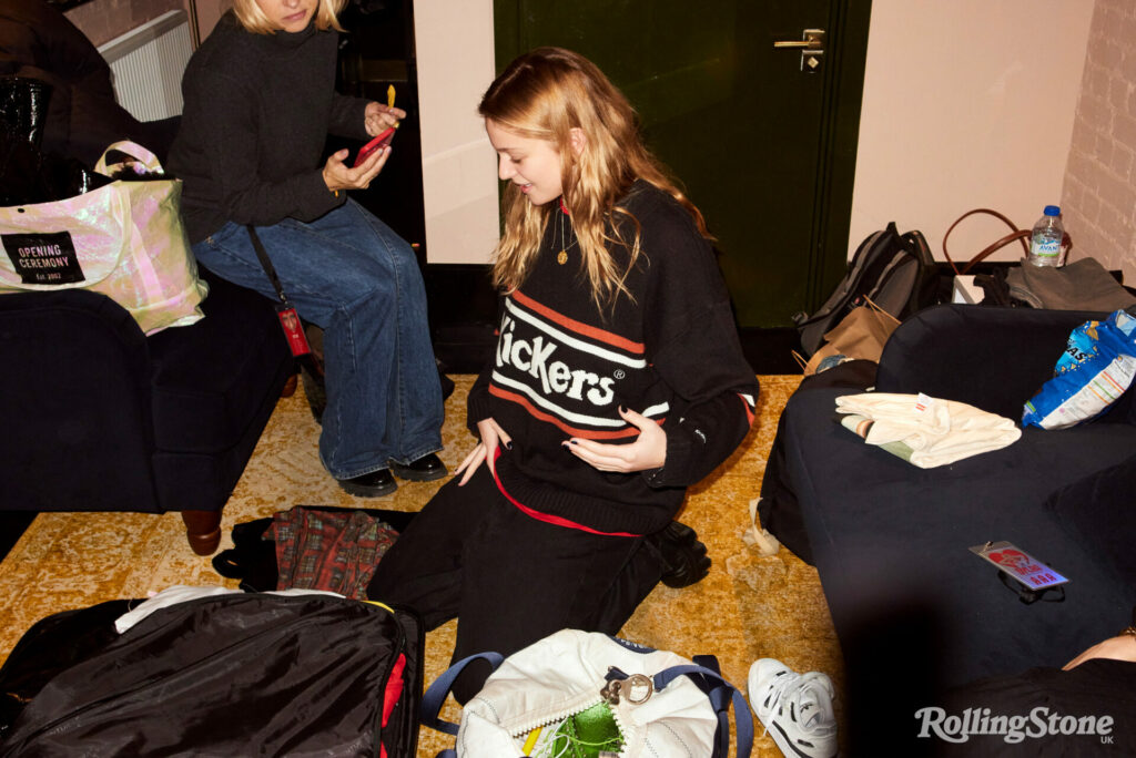 It’s November 2022, and we’re backstage four hours before she’s due to play a sold-out headline show at Camden’s recently renovated KOKO. Excited teenage girls have been queuing outside the venue since 9am, despite slashing rain and bone-chilling winds. At one point, Woods tells me, she was worried about them getting sick, so she got someone to distribute hats and gloves and hot buckets of KFC. Of course they’ll come, I say — they’re already here, aren’t they? People have bought tickets. But Woods just stares ahead blankly, my reassurances sliding off her like sheets of ice. “It’s been quite an overwhelming day,” she says after a while, pulling at the sleeves of her baggy knitted Kickers jumper. “I’m just terrified about tonight.”