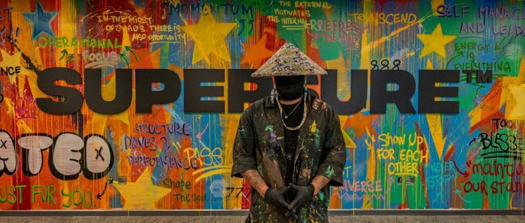 The vision has been entrusted to the artist known as Super Buddha, whose work blends contemporary Asian symbolism, color psychology, numerology, and meditative cultural motifs. Rather than hanging art on walls, he treats art as architecture, atmosphere, and subconscious programming. He is creating a spatial language designed to influence internal state.