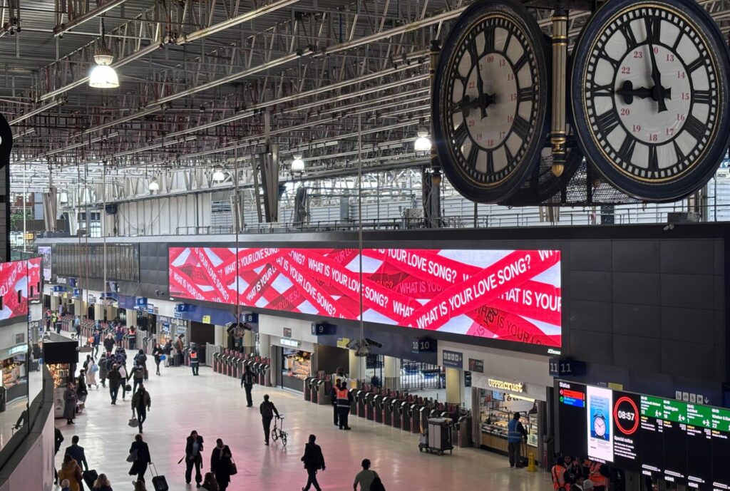 A cryptic question sprung up around London just before Valentine’s day, with the phrase ‘WHAT IS YOUR LOVE SONG?’ appearing on billboards around Waterloo Station, Tower Bridge and the Westfield Centre. The mysterious messages spread from the British capital city, all the way to Seoul and New York, with billboards in Seongsu Station, East Village, SoHo and Brooklyn, all posing the same romantically-inclined inquiry.