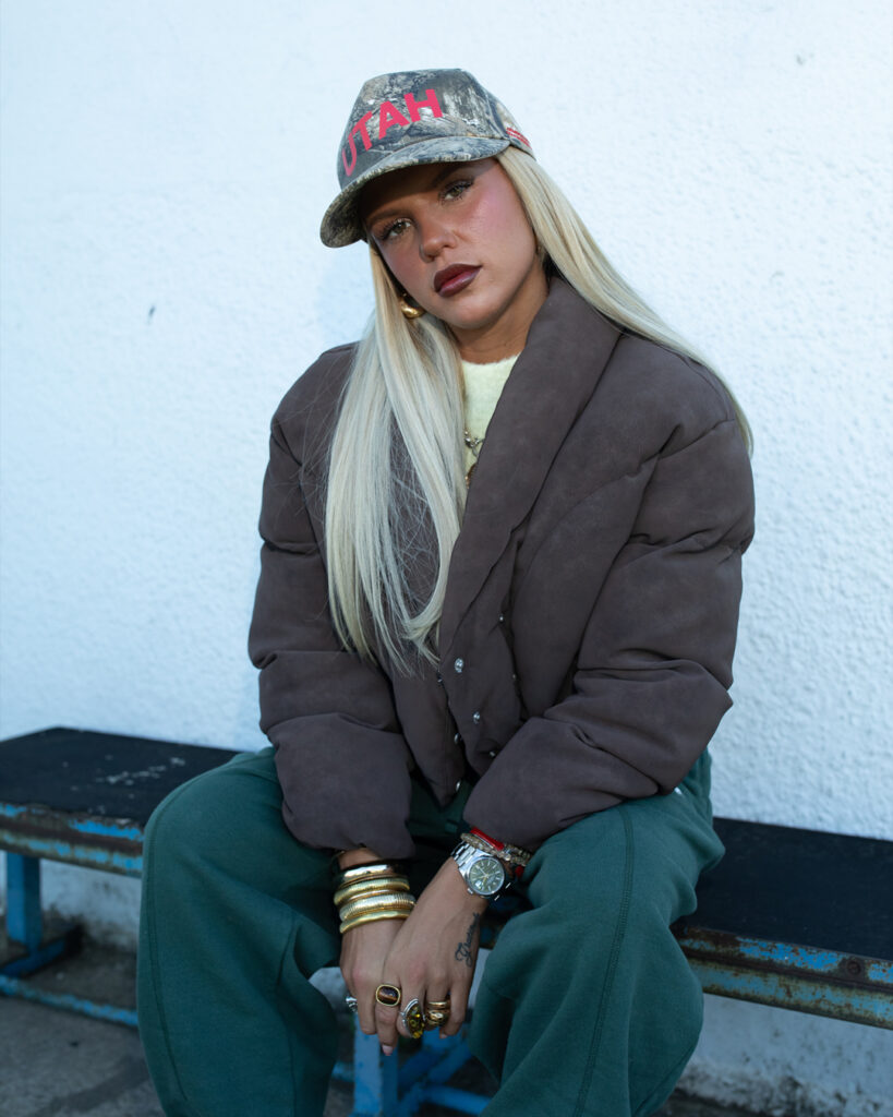 At the same time, she’s very aware of the impact social media has had on the music industry (and beyond). “Numbers are great, but it doesn’t mean much compared to being live with people,” she says. “I’m always the person that would rather sit in a room full of music and live instruments and feel it, whereas that’s got lost a lot more because of social media. It’s ruined the thing of real, raw music because everyone just wants that 20-second, 30-second buzz for TikTok. If that’s what you’re looking for, you’ve got the wrong bitch – I’m someone else!”