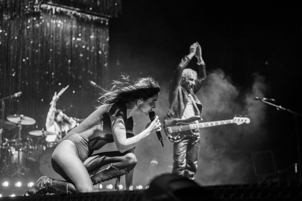 They arrive on a stage which has been draped in an enormous tinsel curtain, channelling the 70s vibe of their brilliant latest album The Clearing, before setting the dramatic ante with ‘Thorns’ – a gorgeous ballad with shades of 007 about it. Dennis Villeneuve could do a lot worse than considering this lot when cameras finally roll on his much-mooted Bond film.