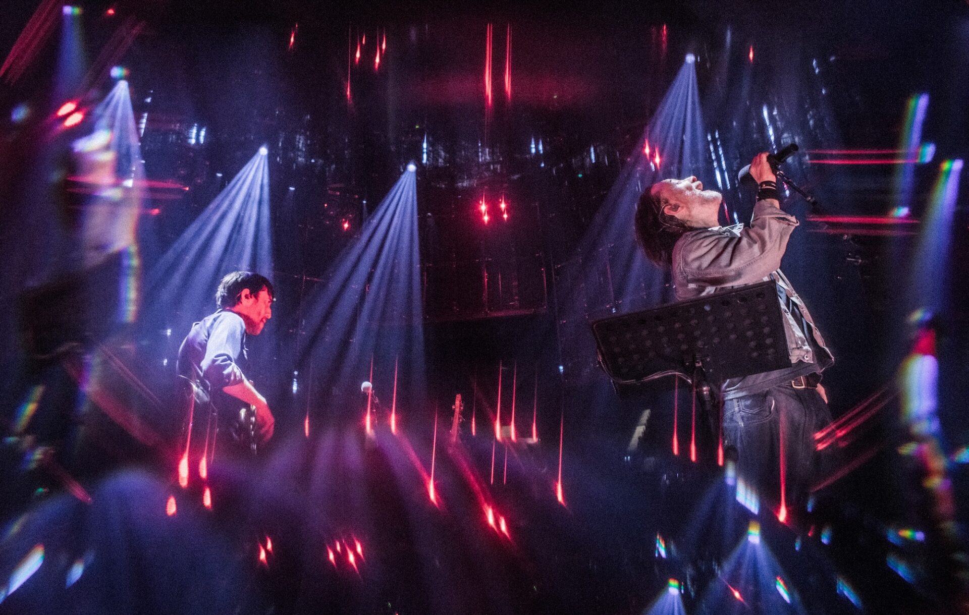 Performing in the round, the band begin with The Bends opener ‘Planet Telex’, partially obscured by panoramic screens. When those screens then rise up a few minutes later at the drop of the scything ‘2+2=5’, a pulsating energy floods the room.