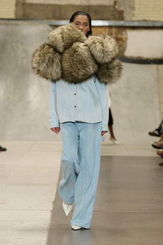 There’s a sense that Pratt is designing armour for the hyper-visible generation: protective yet performative, practical yet impossible to ignore. Even at its most experimental – in the high-shine vinyl or bulbous furs – the collection maintained a clarity of purpose. As the title suggests, these were not abstract fashion fantasies but intellectually seductive propositions.