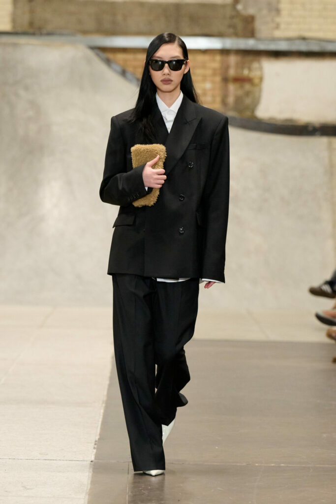 The Central Saint Martins Class of 2024 graduate presented a balancing act between creativity and restraint, defined by a sharp, deliberate minimalism. A refined sensibility that’s already attracted high-profile attention with A$AP Rocky recently appearing on The Late Show with Seth Meyers wearing a dark navy double-breasted poncho and black wool trousers from the brand.