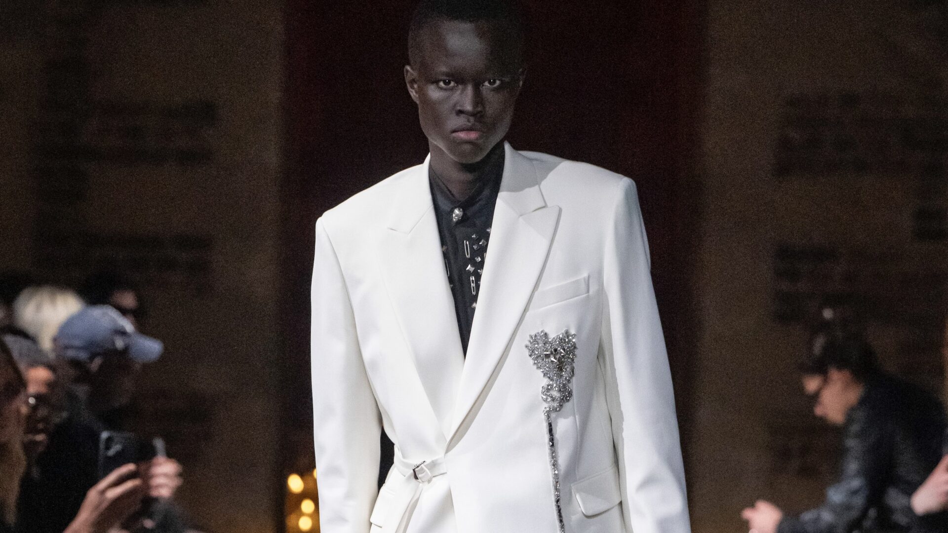 Soundtracked by Depeche Mode’s Personal Jesus, the show revelled in New Wave attitude, amplified to stadium scale. Leather gloves clung like a second skin; leather boots stalked the runway with predatory precision. This was a wardrobe built for the vampires of Jim Jarmusch’s Only Lovers Left Alive. Slick and decadent, with the right dose of romance.